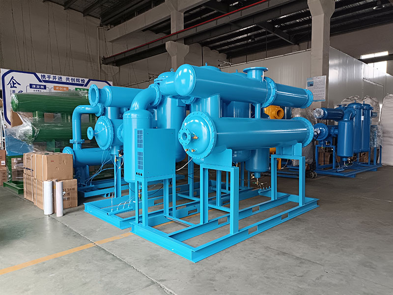 The equipment adopts unloading pressure desorption, desiccant residual heat heating desorption. The equipment design adopts a double-cylinder structure, under the control of the program controller, one cylinder adsorbs the water at the same time, and the other cylinder desorbs it. Two cylinders circulate continuously in an alternating cycle, and the moisture in compressed air is eliminated by the equipment itself.