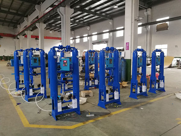 After the initial drying process, the moisture content of the air significantly decreases. Then it enters the adsorption cylinder. The desiccant inside the cylinder performs a deep dehumidification process on the air, and finally, high-quality compressed air with an extremely low dew point is output.