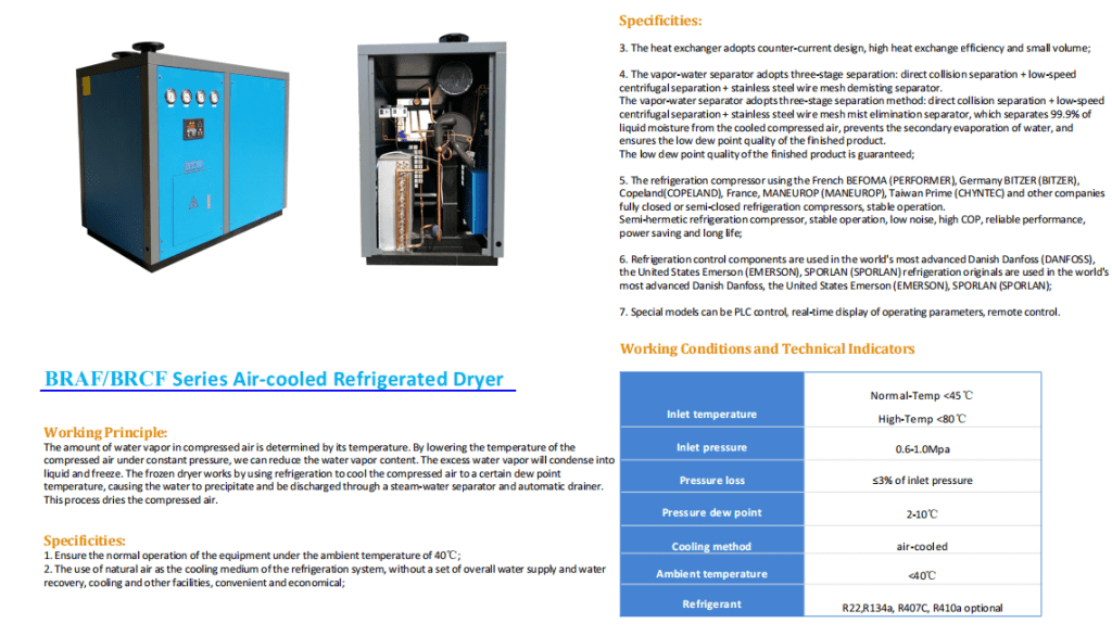 The adsorption dryer reduces the dew point of compressed air to -20 ℃, while the freeze dryer stabilizes it at around 3 ℃, effectively removing moisture and avoiding color difference, deformation, or microbial growth in textiles due to moisture.