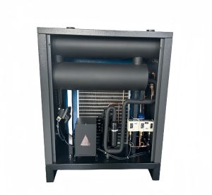 This 3.8Nm³/min refrigerated air dryer adopts a wind-cooling design. It uses an efficient finned heat exchanger and a powerful fan for heat dissipation. The installation is simple and it can start running immediately after being powered on.