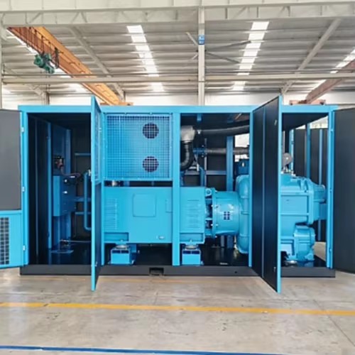 Using two-stage compression with intercooling technology. The air is compressed twice and cooled between stages, making the compression process closer to isothermal compression and reducing energy loss. Compared with ordinary single-stage power frequency machines of the same power, it can save 10%-25% energy.