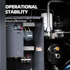 Equipped with a high-precision screw airend made of premium alloy materials. The compressor features an optimized rotor profile that minimizes wear and tear even during long hours of operation.